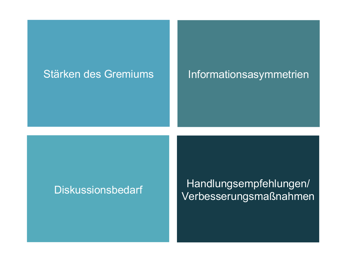 Das Ziel der Evaluierung ist es, die Arbeit Ihres Gremiums wirksamer und effizienter zu gestalten.